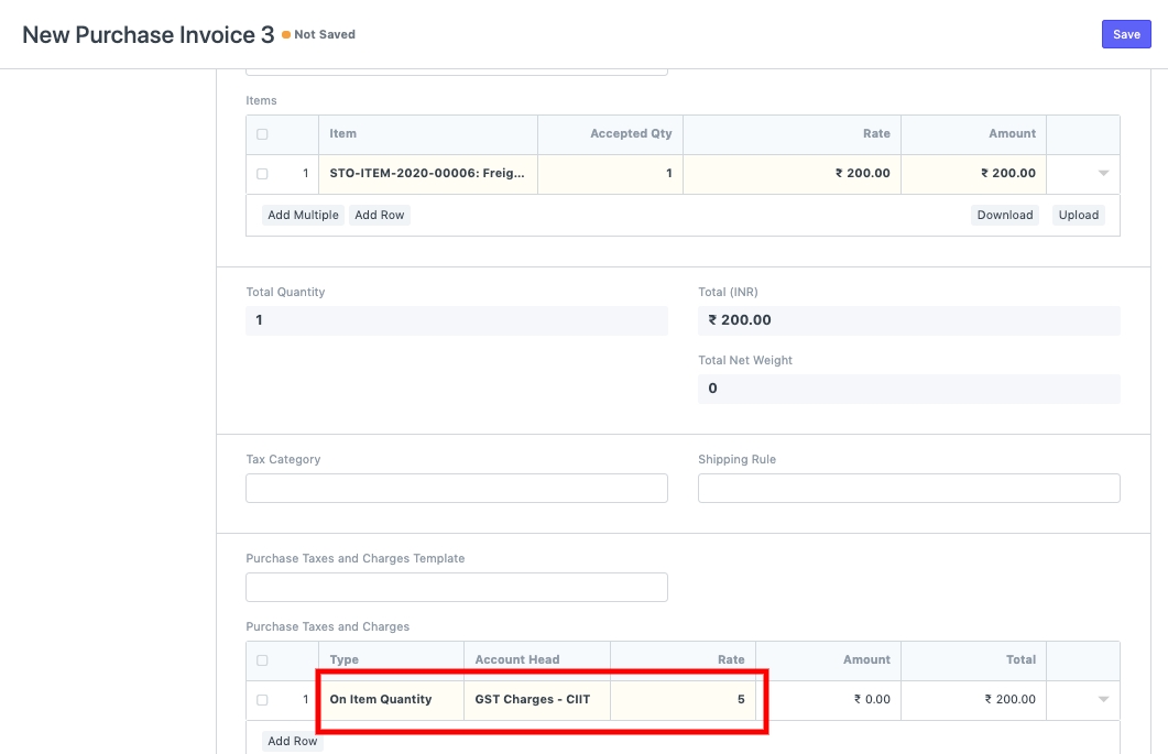 You can now create Purchase Invoice for the Supplier and add this item to calculate the Taxes related to the freight. You can set the freight tax based on the Net total or Item Quantity as per the company policy.