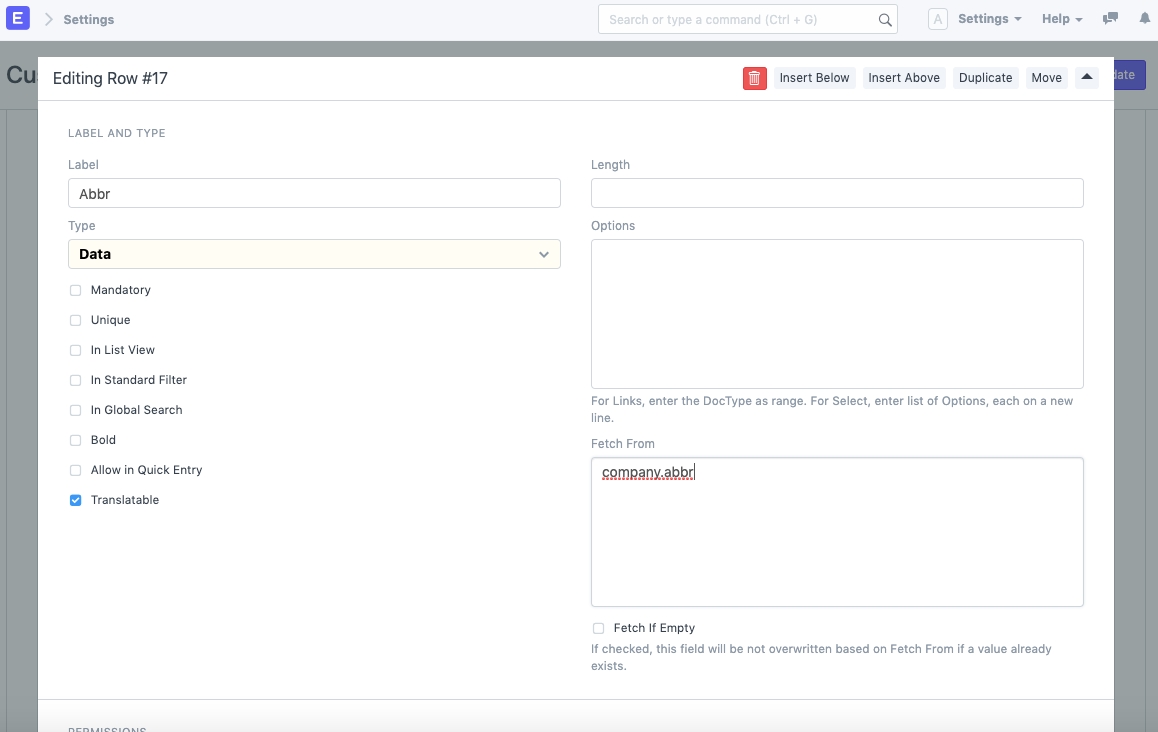 2) Next, below the field of Company, add another field and name it 'Abbr'. Add company.abbr