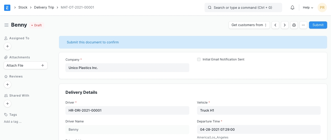 Multiple stops can also be added and Submitted Delivery Note can be tagged per Customer.