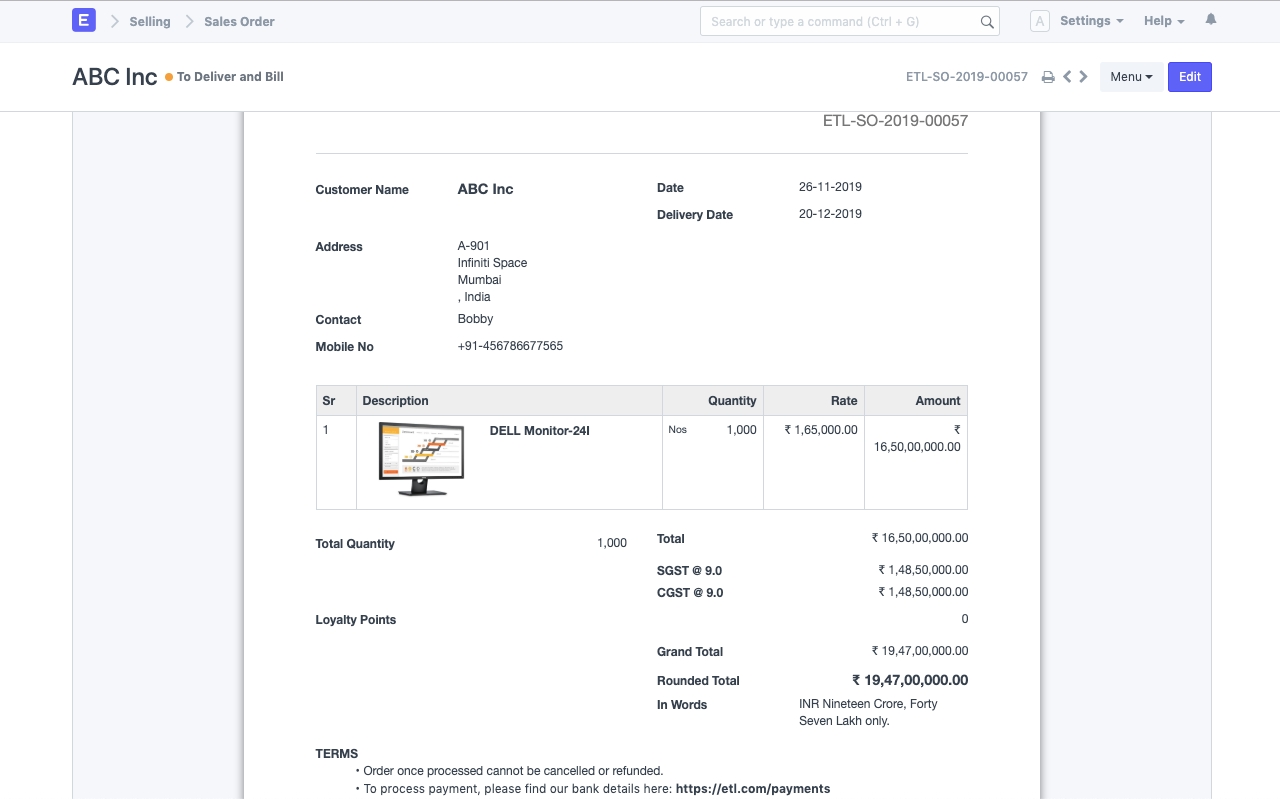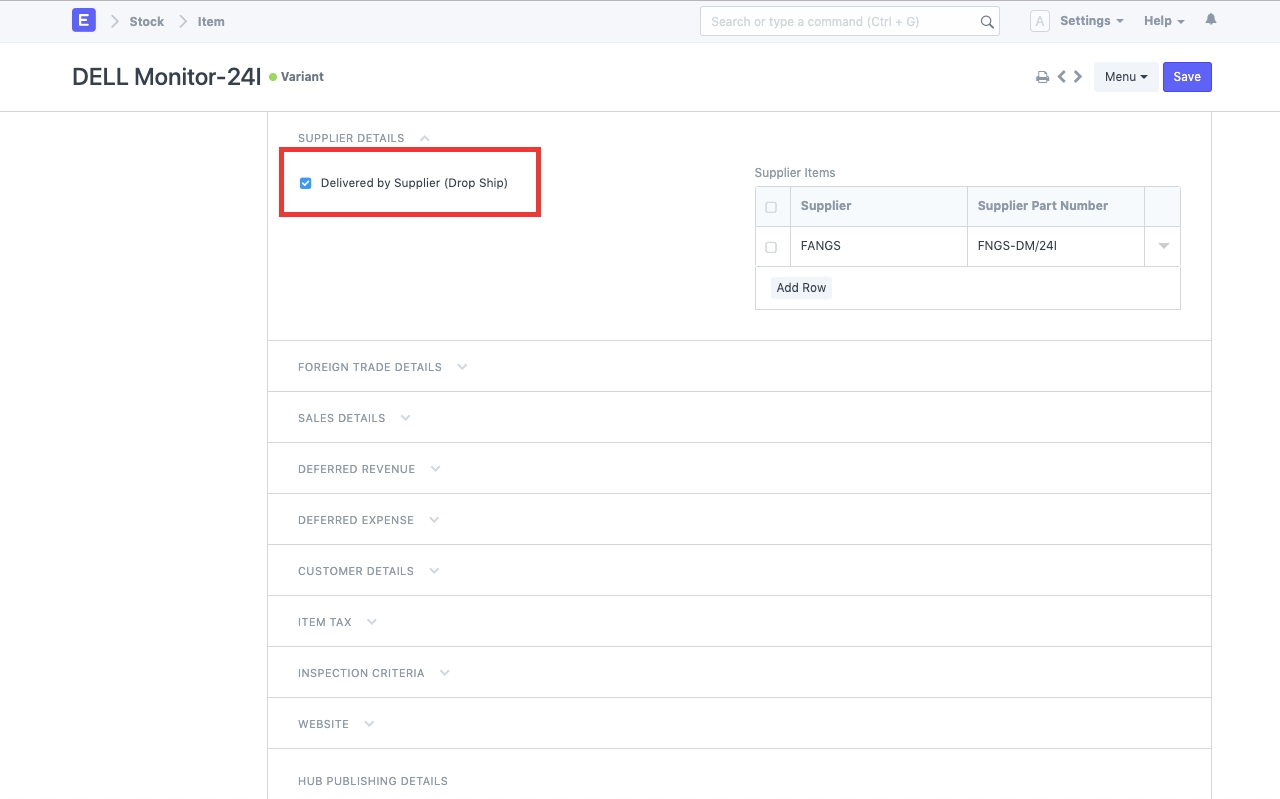Drop shipping may also occur when a small retailer (that typically sells in small quantities to the general public) receives a single large order for a product. The retailer may arrange for the goods to be shipped directly to the customer from the manufacturer or distributor. Drop shipping is common with expensive products. No inventory is maintained by the retailer in any case, simply acting as a middleman. In this article, we will see how Howinibs provides a seamless drop-shipping experience. Consider a business dealing with Computer Monitors. Now, the retailer has received an order from a customer, ABC Inc. for 1000 DELL 24Inch Monitors. Drop Shipping In Action: 1. Item Configuration