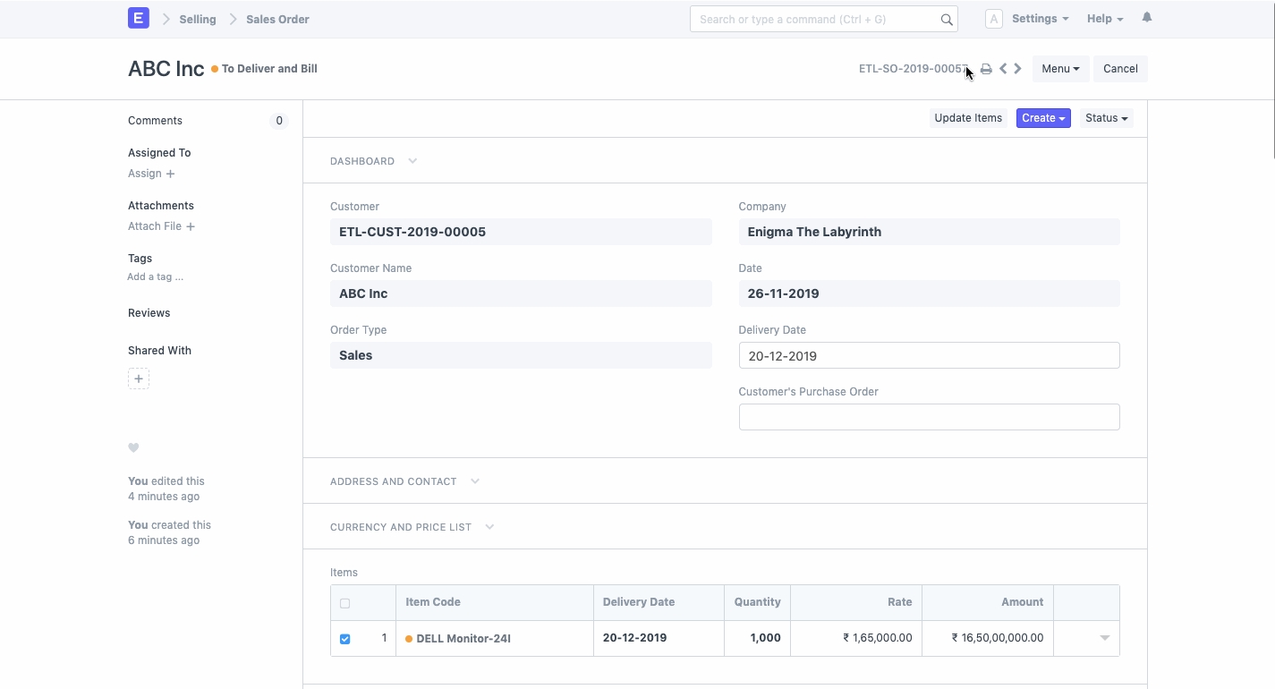 Create Sales Order with Customer, Item, Qty, Rate, Taxes and so on.