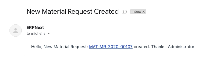 4) Now on creation of a new Material Request, following email will be received because of the above set Notification.