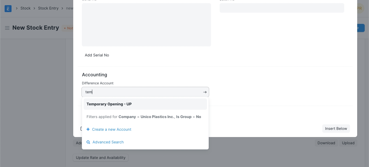As per perpetual inventory valuation system, accounting entry is created for every stock transaction. Double entry accounting system requires Total Debit matching with Total Credit in an entry. On the submission of Stock Entry, system debits Warehouse account by total value of items. To balance the same, we use Temporary Opening account as a Difference Account.