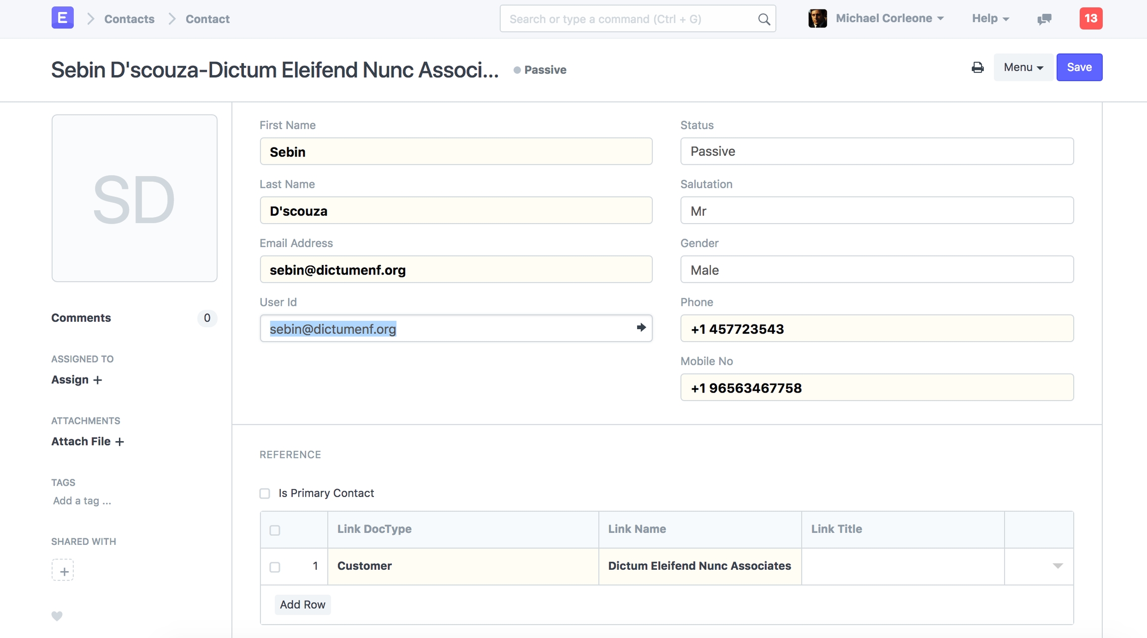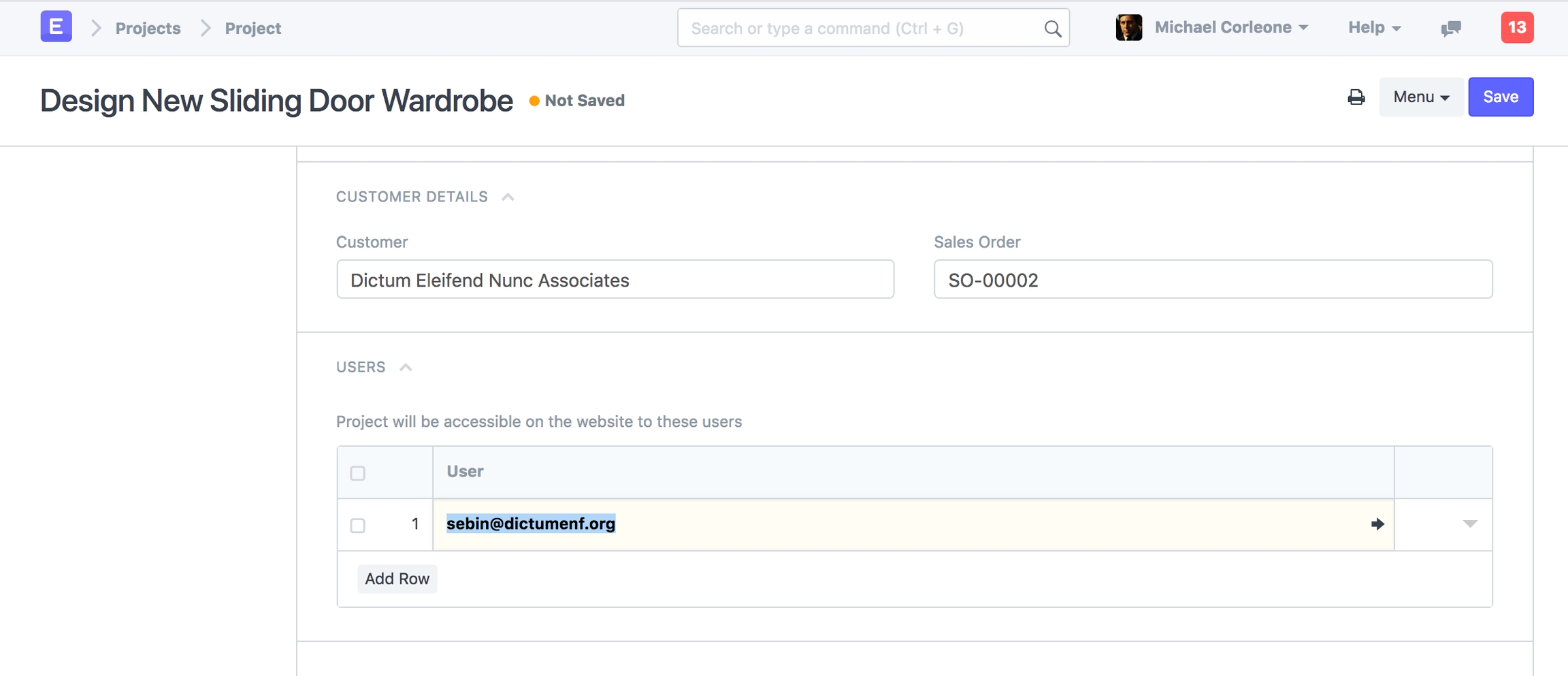 In the Project, check Customer Details section. Select a Customer and Sales Order associated with this Project.