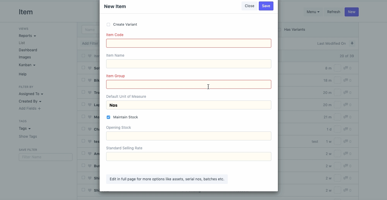 In Howinibs, these masters are non-submittable. Hence, even on rejection, sometimes, they are still active and you can use them in transactions. In this article, we have taken the example of the Item master. We will set a simple workflow on Item and make it active only when it has been approved. To do so, follow the below steps: