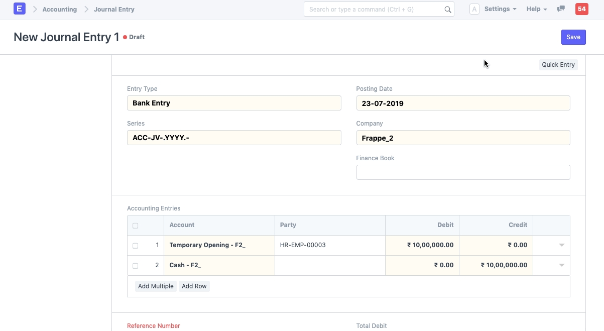 4. Now, you need to create the Disbursement Entry. By clicking the 'Create Disbursement Entry; at the top right corner of the Loan Document. This creates a Journal Entry For Loan Disbursement.
