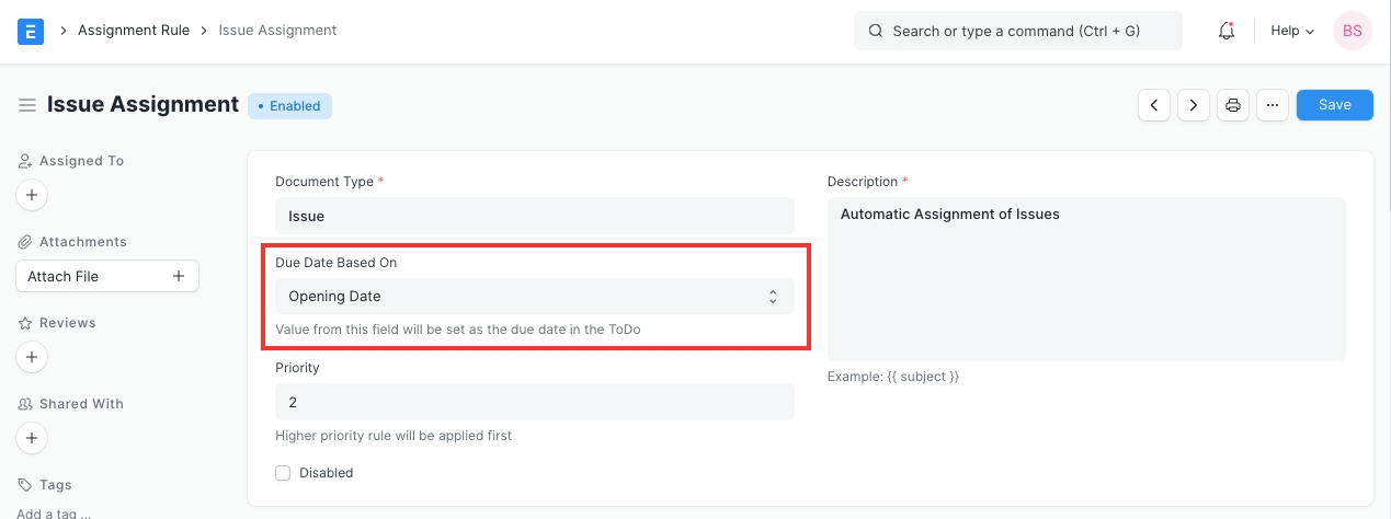 "Due Date Based On" option will not be available if "Document Type" is not yet selected or if the selected Document Type does not have any "Date" or "Datetime" field.
