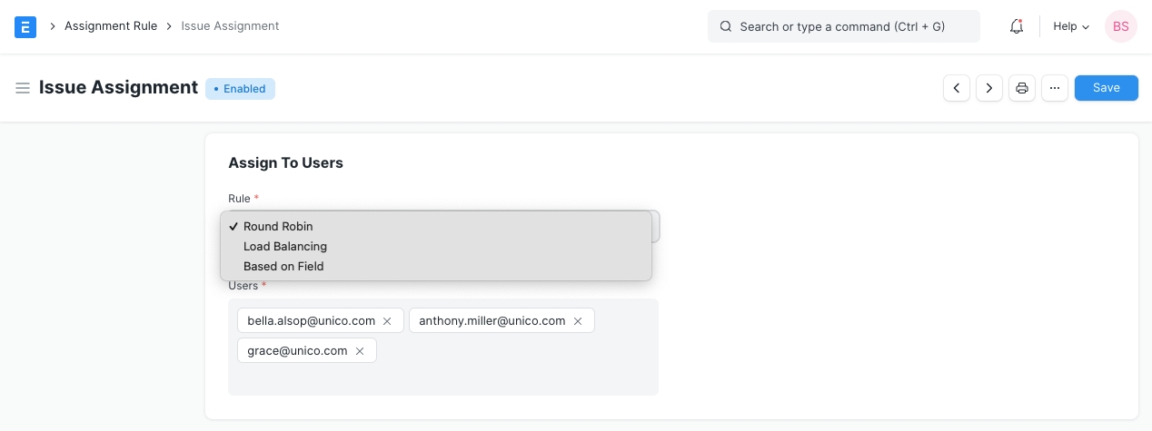 Assignment Rule Round Robin: Assign each document to a User in sequence.