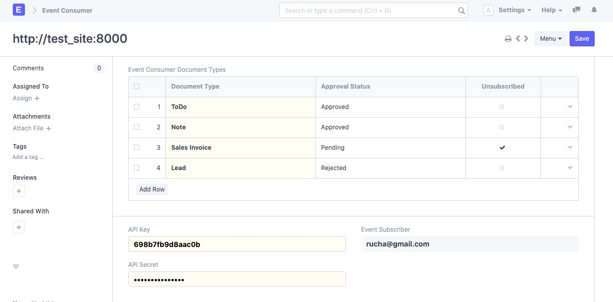 Before creating an Event Producer, a common user needs to be created on both the sites which will be used to access the site and will act as an Event Subscriber. Make sure the user is a System Manager and has the necessary permissions for creation, updation, and deletion of the subscribed DocTypes.