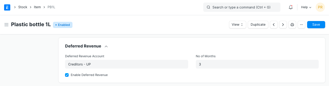 You can enable deferred revenue or expense from the item. Once you tick the checkbox, you'll see options to set the Deferred Expense Account and the number of months through which the revenue/expense is deferred.