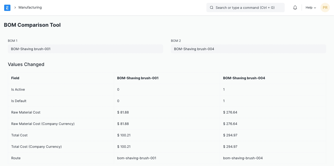 Home > Manufacturing > Tools > BOM Comparison Tool