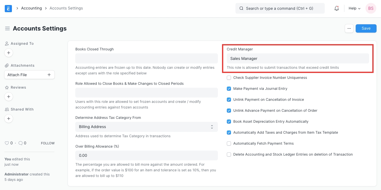 Set the role in Credit Controller field.