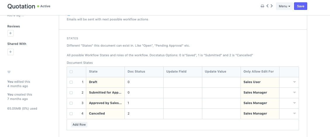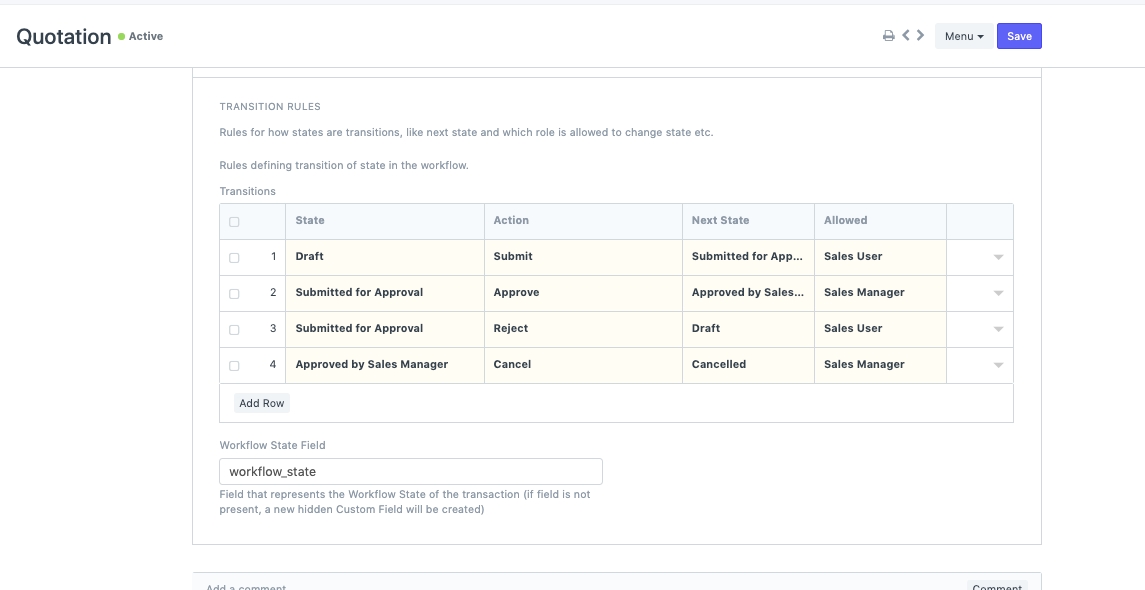 For instance: A Sales user is only allowed to create a Quotation and it can be saved in the Draft state.Further, it can be sent to the Sales Manager for approval and the User with this role can have the permission to either Approve or Reject the Quotation after which it can either be sent to the Draft State if Rejected or final Approved State.