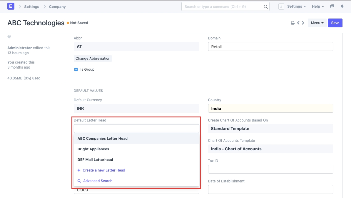 If you are managing multiple companies in a single Howinibs account, then ensure that for each Company, default Letter Head is set in the Company master.