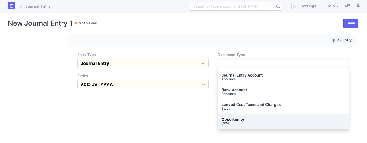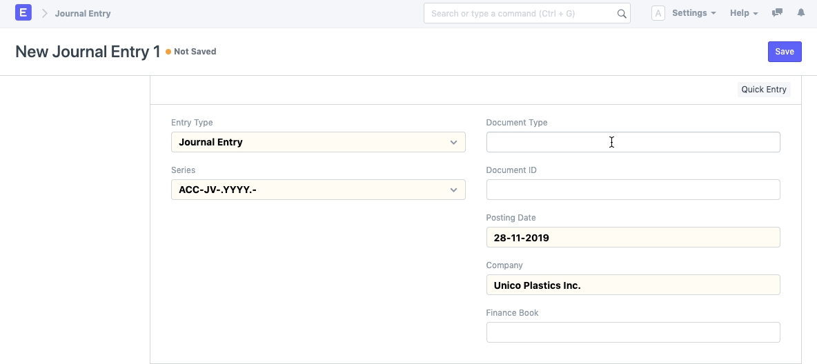 Below are the steps to insert Custom Dynamic Field. For instance, we will insert Dynamic Link Field in Journal Entry.