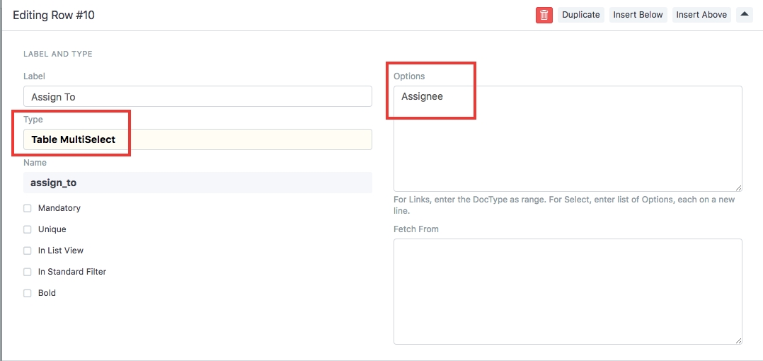 > Note: Table MultiSelect fields cannot be added in child DocTypes.