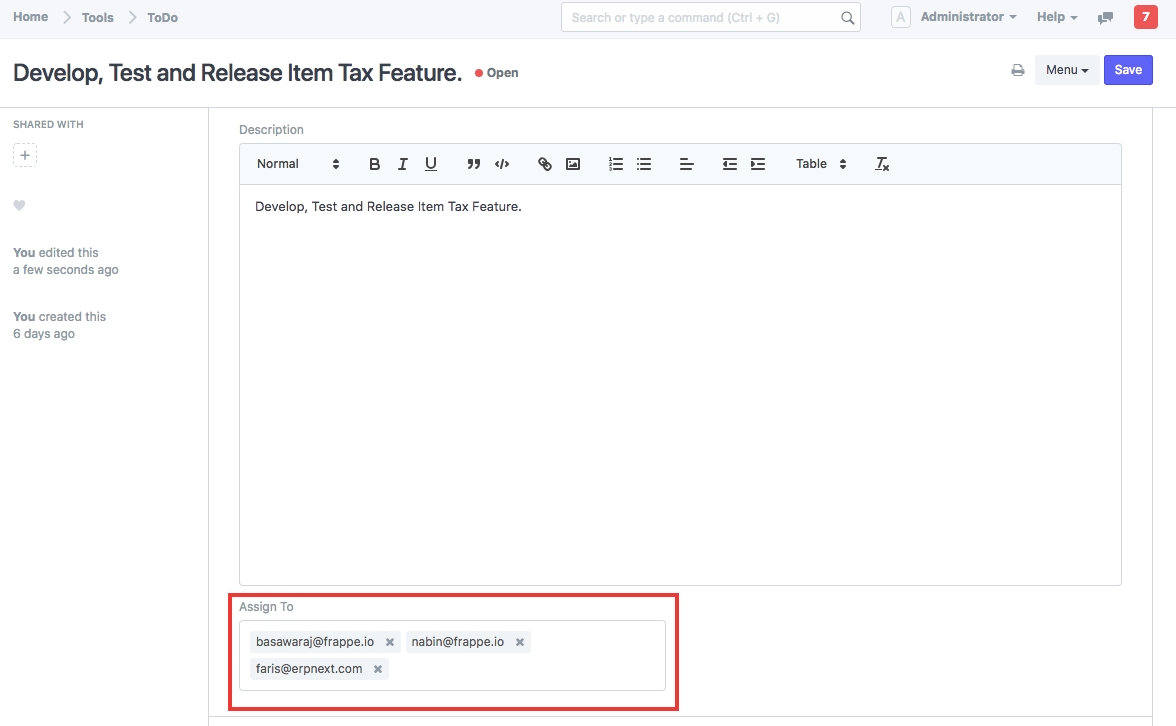 Let us consider an example to understand the same. Let's say you want to assign a ToDo to multiple users, as shown below: