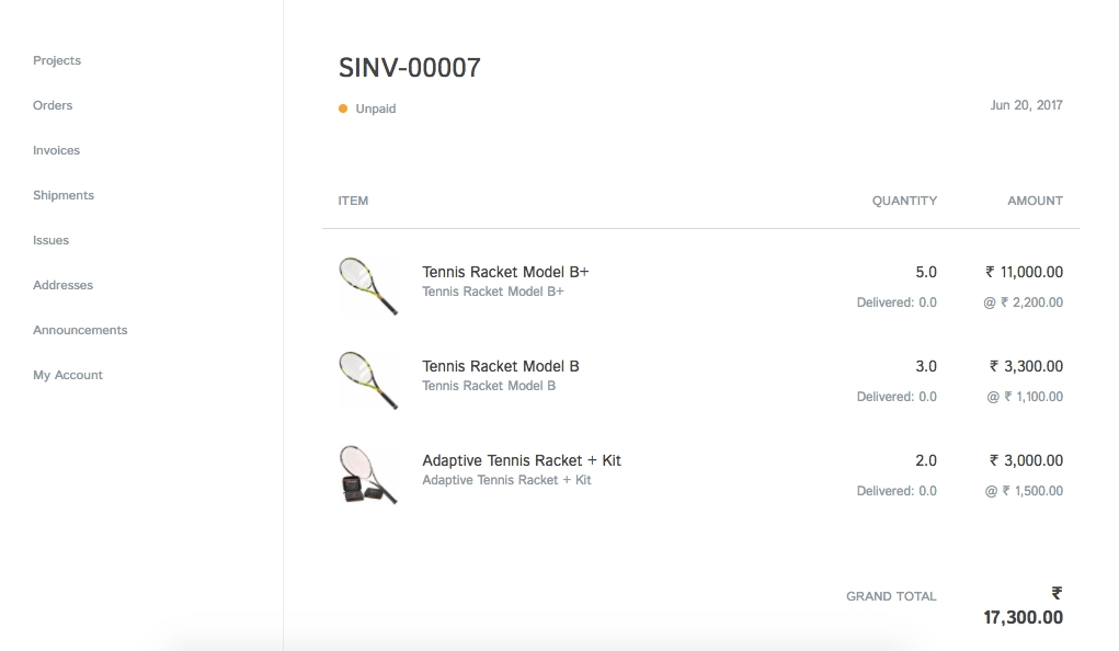 Once an order is raised, either using the Shopping Cart or from within Howinibs, your customer can view the order and keep an eye on the billing and shipment status. When the invoice and payment against these orders are submitted, the customer can see the updated status on the portal, at a glance.