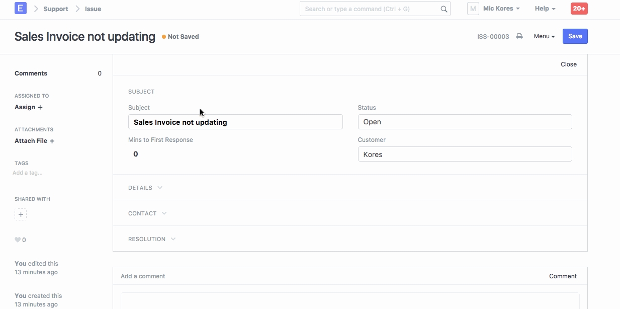 The customer portal makes it very easy for a customer to raise concerns. A simple and intuitive interface facilitates your customer to report their concerns as Issues.