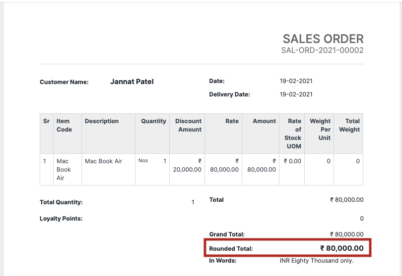 All the sales transactions like Sales Order, Sales Invoice have Rounded Total in it. It is calculated based on the value of Grand Total. Moreover, Rounded Total is also visible in the Standard