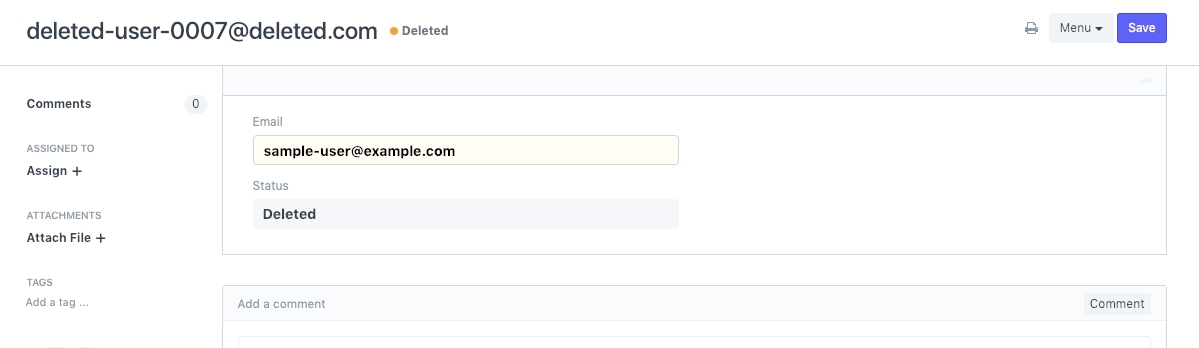 This indicates that the System Manager has clicked on the "Delete Data" button. This means that the user's personally identifiable data has been anonymized.
