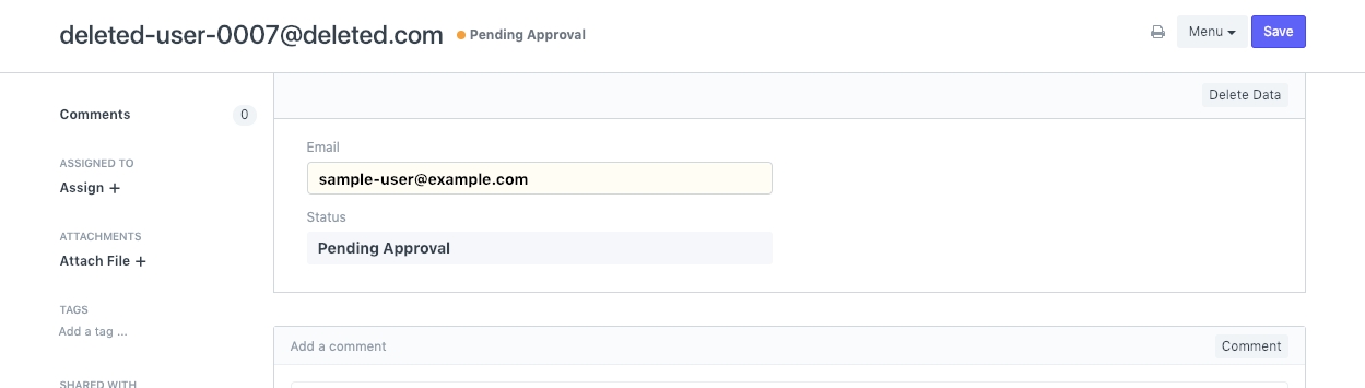 This indicates that the user has verified the request via email. This enables the option of "Delete Data" for System Managers.