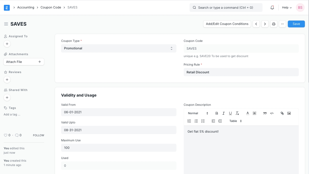 Everyone loves discount! so do the coupons offering such discounts. To encourage Customers to buy from the e-commerce website, coupon code feature is exciting.