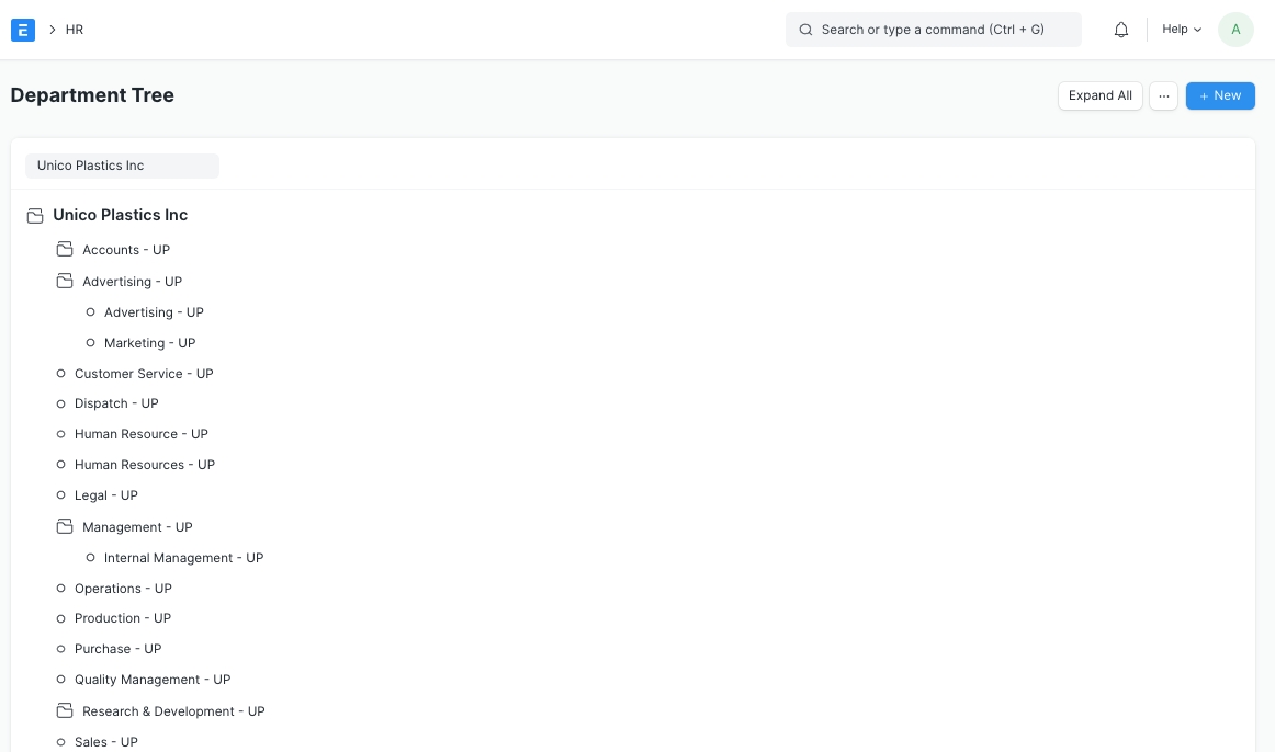 Department is a tree-structured master, which means you can create parent departments and sub-departments as shown below: