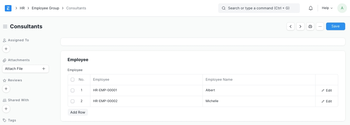 Select and add Employee ID to the group. The Employee Name will get automatically fetched.