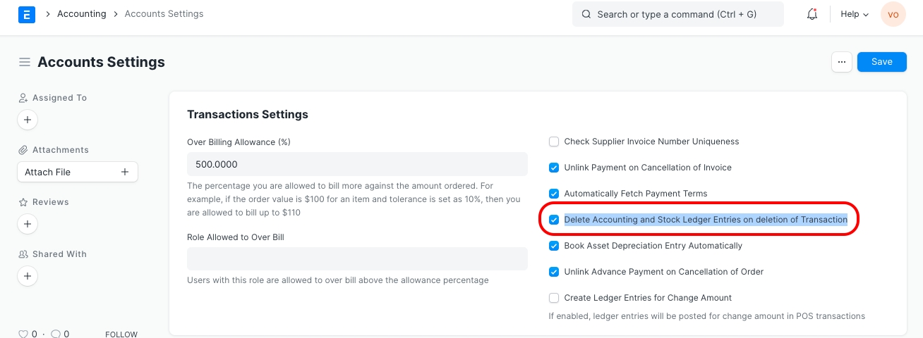 Enable a checkbox Delete Accounting and Stock Ledger Entries on the deletion of Transaction