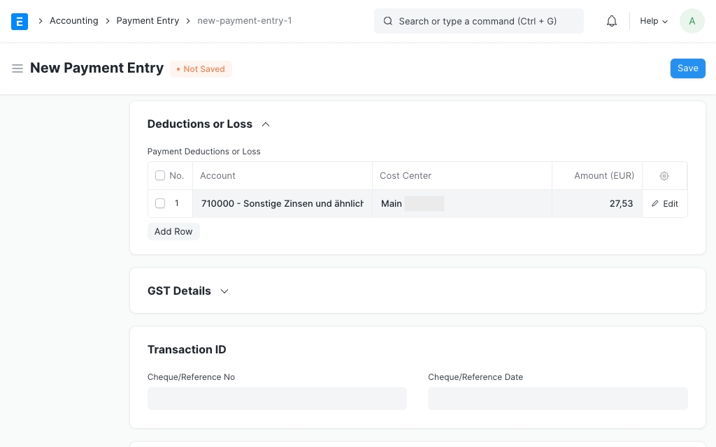You can already set an income Account (for example, "Other interest and similar income") and Cost Center for the income generated from interest and dunning fees. These will be used once a Payment Entry is created from this Dunning.