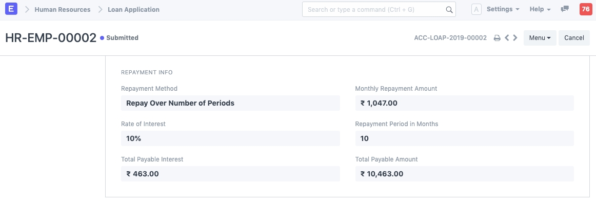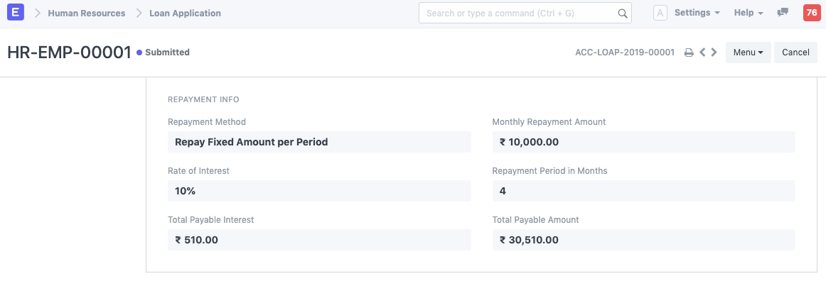 > Human Resources > Loan > Loan Application