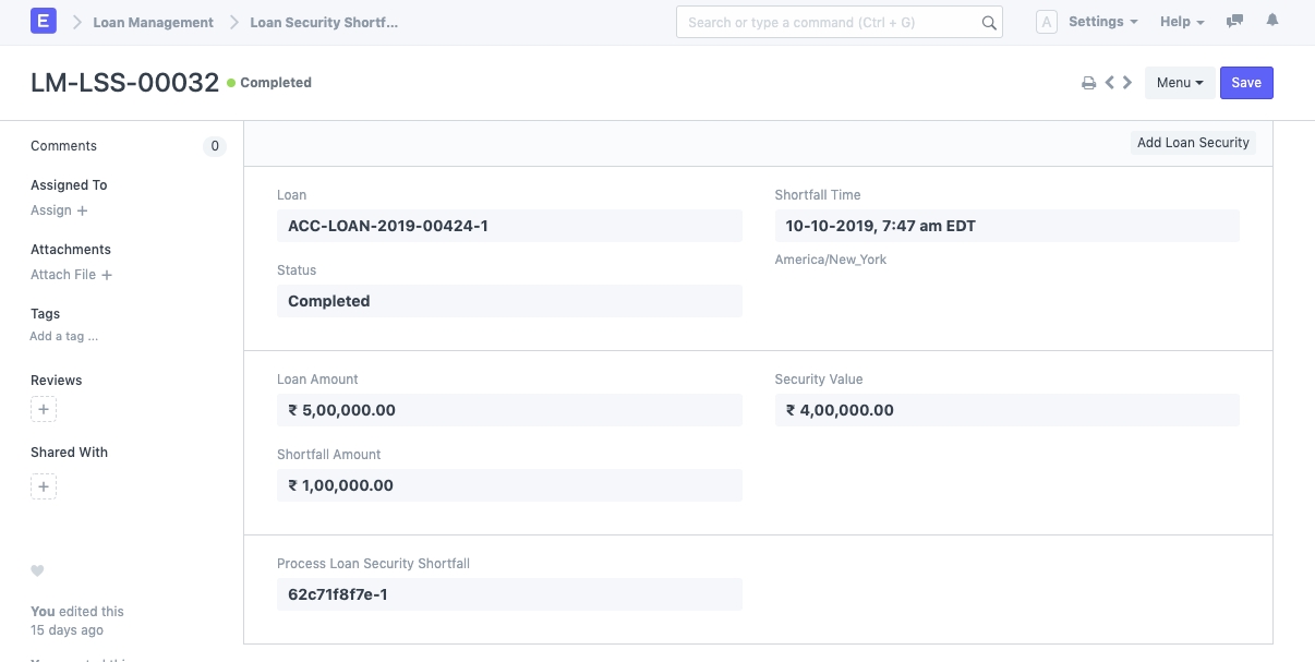 Loan Amount: Loan amount is the pending loan amount which is used for shortfall calculation.