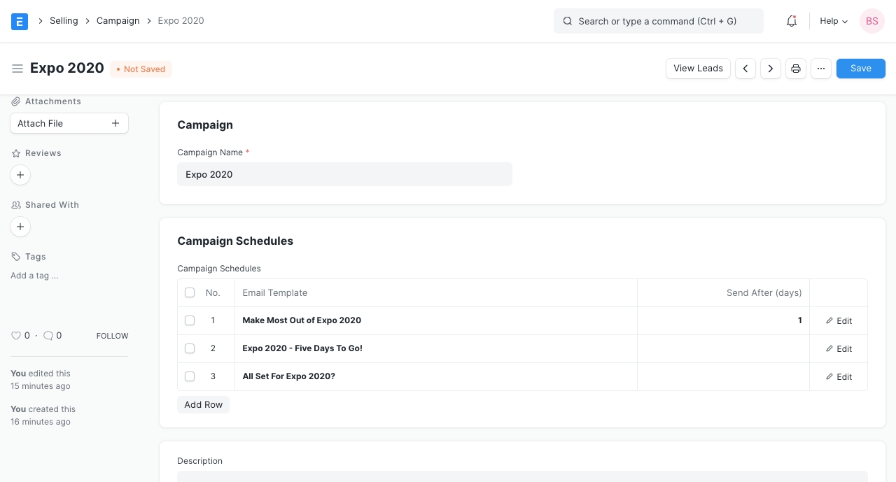 If you want to carry out a campaign using emails for your leads or contacts, Email Campaign serves the purpose.