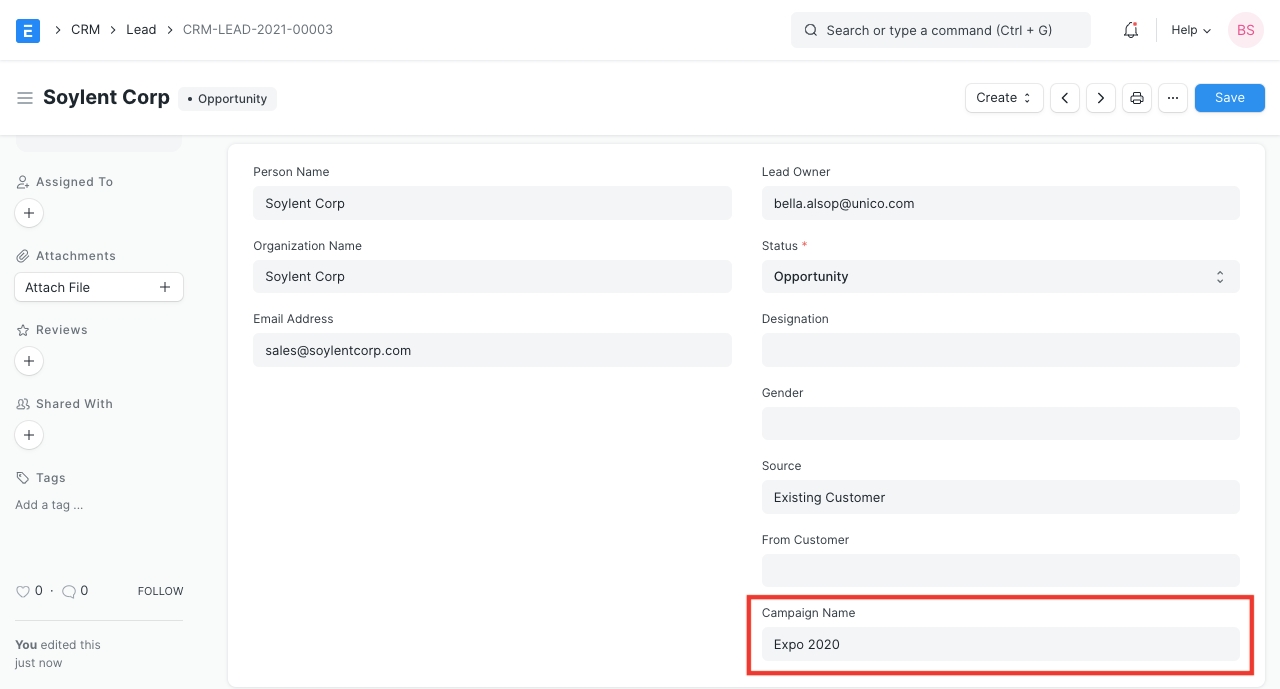 When a marketing campaign generates a lead or an opportunity, you can tag the campaign while creating the Lead or Opportunity. You can also tag the campaign in Quotation.