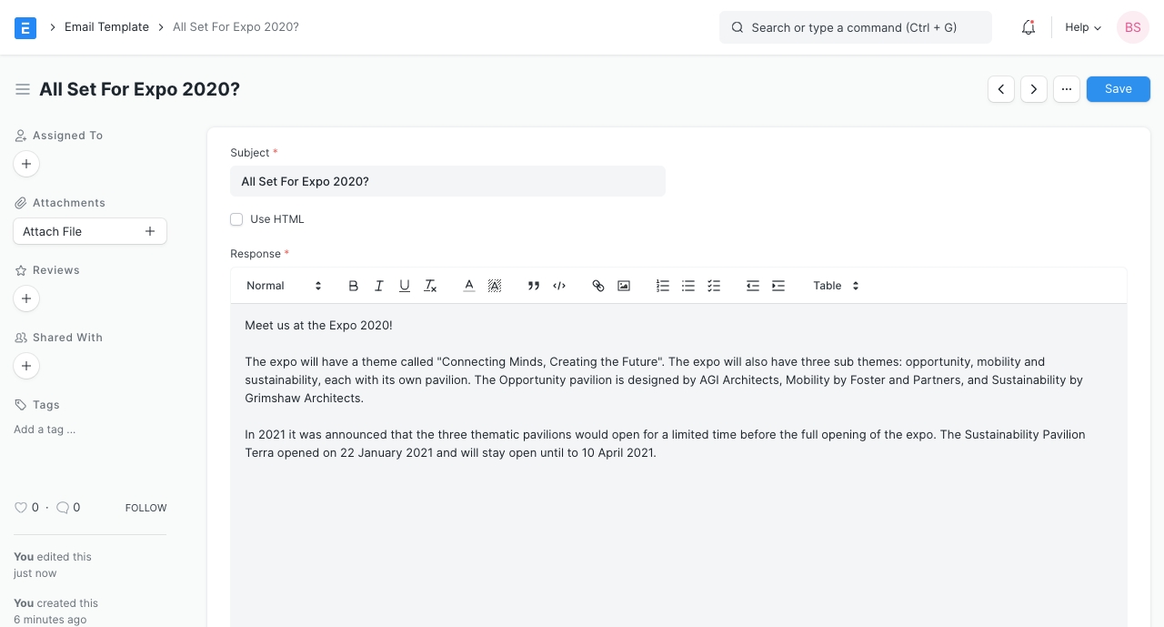 In Email Template, select an 'Email Template' which you would like to send via email to the lead or contact. You can create one as follows: