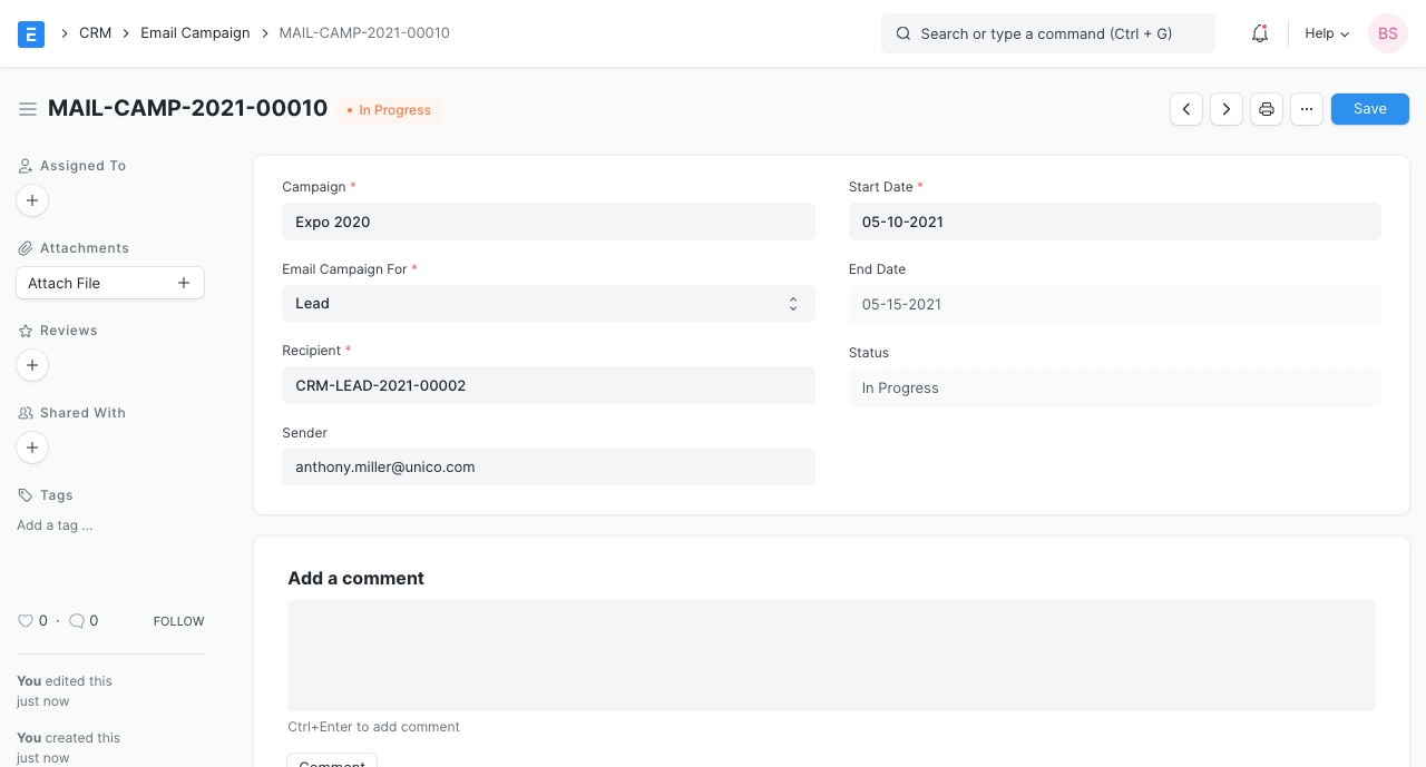 Email Campaigns are still one of the most effective ways to reach your Customers, Contacts or Leads and keep them engaged. For example, you could set up Email Campaigns for introducing your product to the customers, with every email revealing an interesting feature of your product.