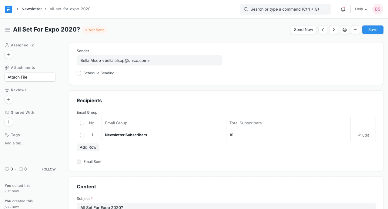 You can review the newsletter received in the test email, verify it and then send it to all subscribers by clicking on 'Send'.