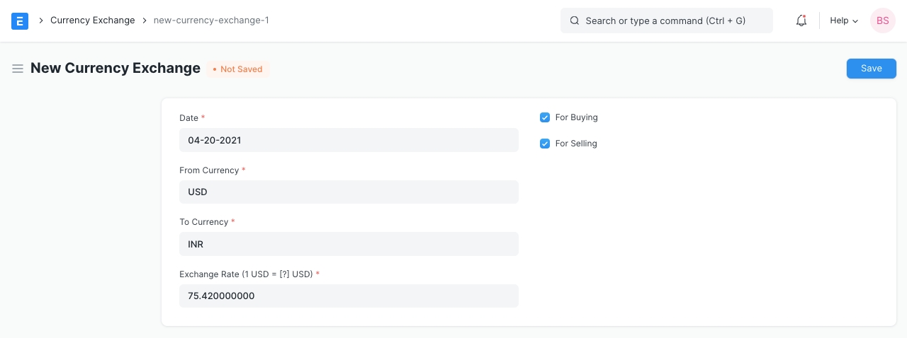 The Currency Exchange form in ERPNext stores exchange rates manually stored by the User. By default, ERPNext automatically fetched the current exchange rates for currencies as per the market.
