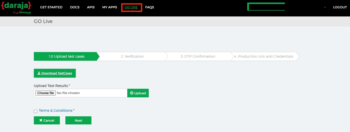 When all the test cases are satisfied and expected results match the final results, you need to submit the document and follow the steps to get the final credentials for your application.