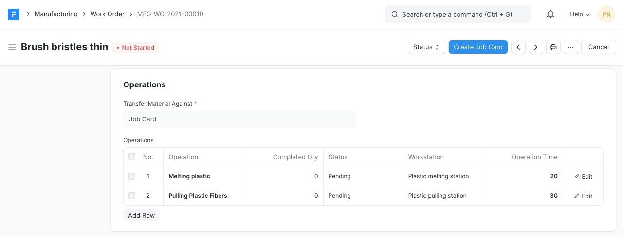 Job Card for Operations is automatically created when a Work Order is submitted.