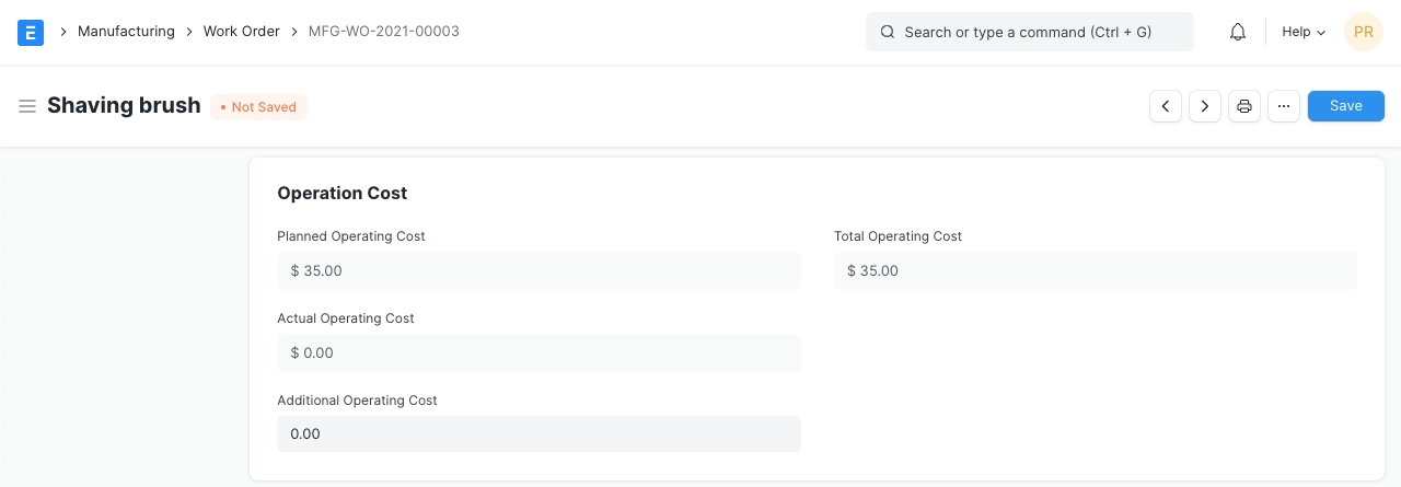 Planned Operating Cost: This is fetched as per the BOM and the Operations defined in it.