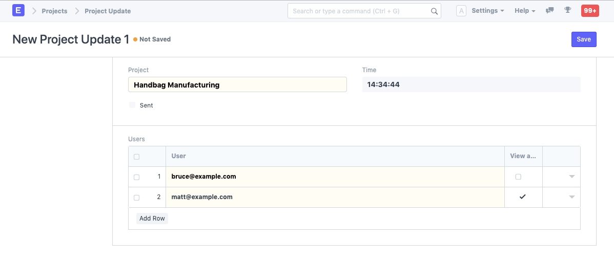 Add the name of the Users to whom you want to send the Project Update in the Child Table. These Users could be your Customers or any other Internal or External Stake Holders.