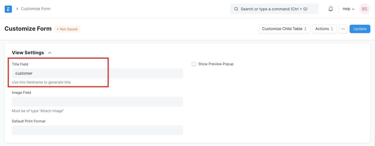 Alternatively, you can also define a particular field as the 'Title Field' in Customize Form.