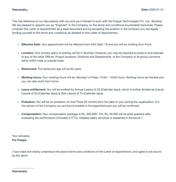 In Frappe HR you can create an Appointment Letter that you can give to candidates. To access Appointment Letter, go to: