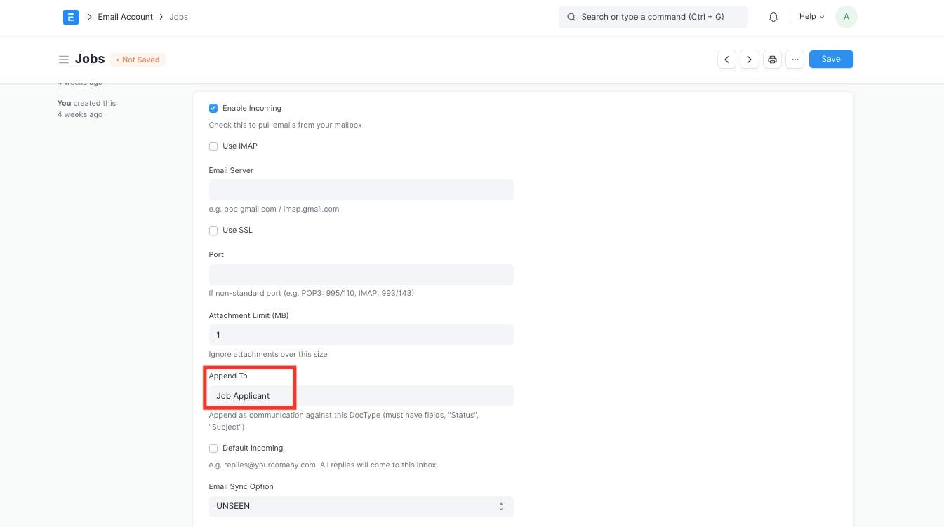 You can link Job Application with an Email account. Suppose you link Job Application with an email [email protected], the system will create a New Job Applicant against each email received on the mailbox.