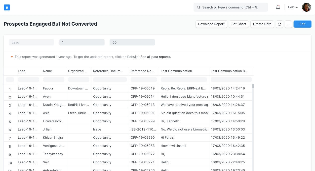 Using this report, user gets the information about the leads who have shown interest in the business with you but due to some reason they were not converted into the customers.