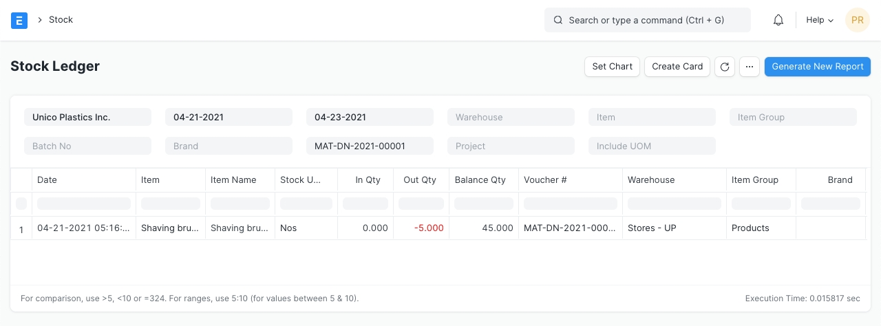 Return Stock Ledger In case of Return Sales Invoice, Customer account will be credited and associated income and tax account will be debited as shown in the Accounting Ledger.
