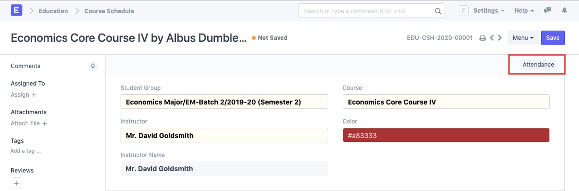 To mark attendance for a course, click on Attendance in the Course Schedule. You will be redirected to a page, wherein the name of all the students will be listed along with check-boxes for marking attendance. You can check the Present students and Mark Attendance. You can also Check All or Uncheck All and mark attendance.