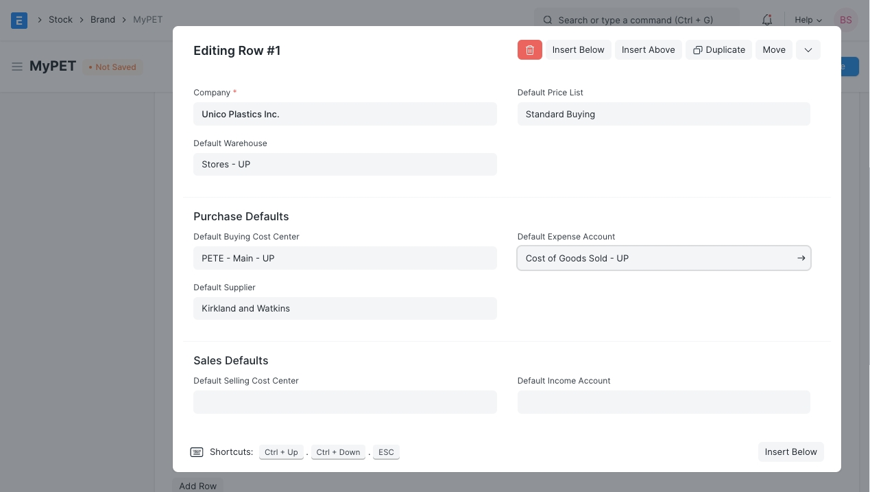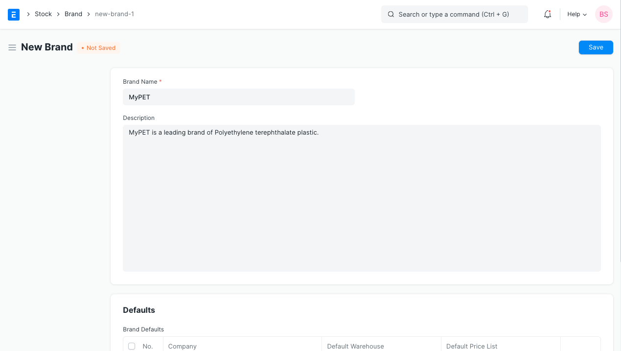 The following defaults can be set for a Brand. On assigning this brand to an Item, the set defaults will be fetched when performing Sales/Purchase transactions with Item of this Brand.